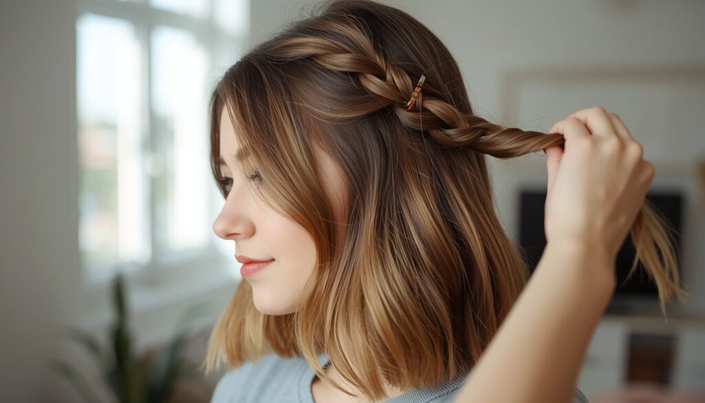 Tip: This works well for shoulder-length hair and adds elegance without needing full-length braids.